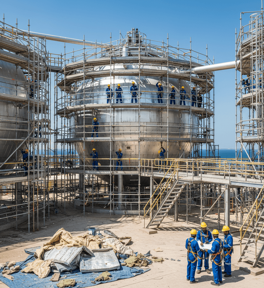 Comprehensive Scaffolding & Insulation Works for Heating Oil Pipeline Systems